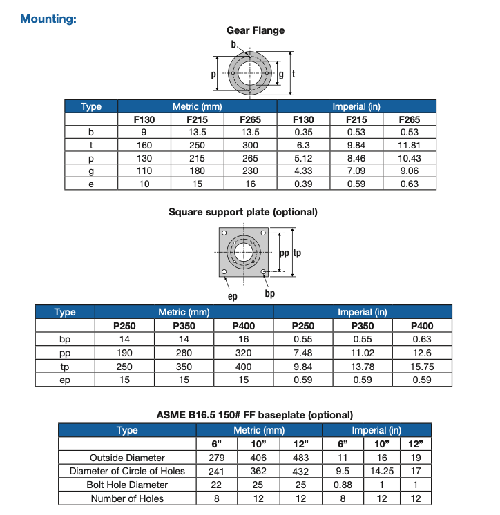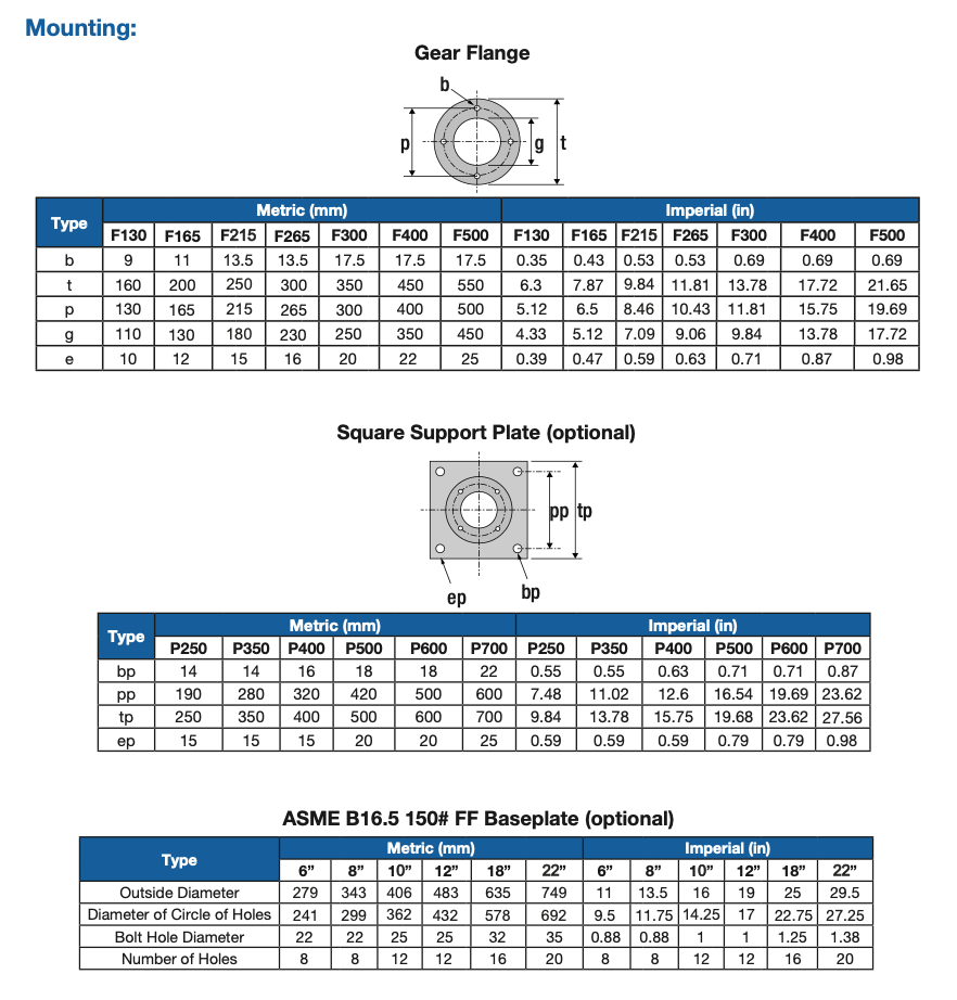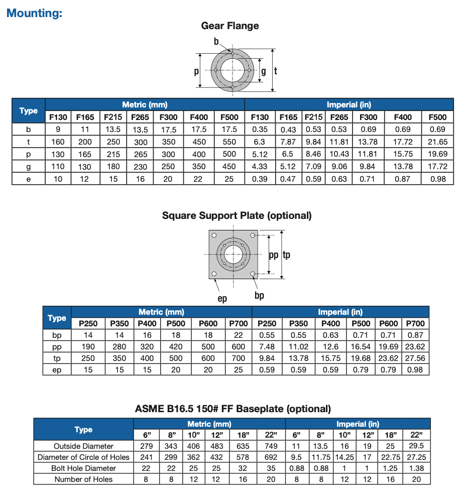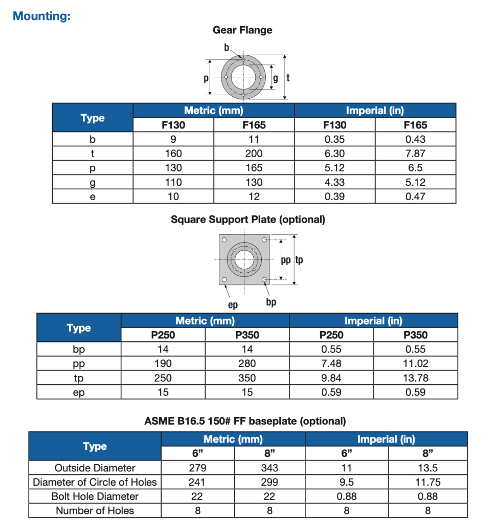 Multiple mounting options: direct, square baseplate, ASME flange
