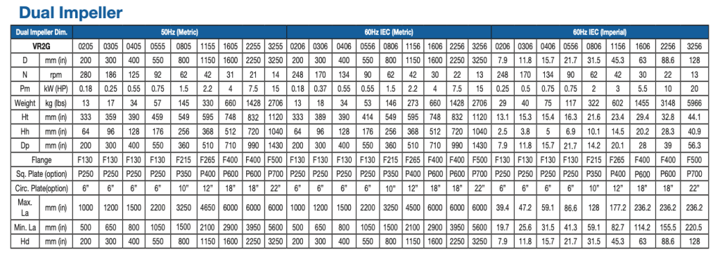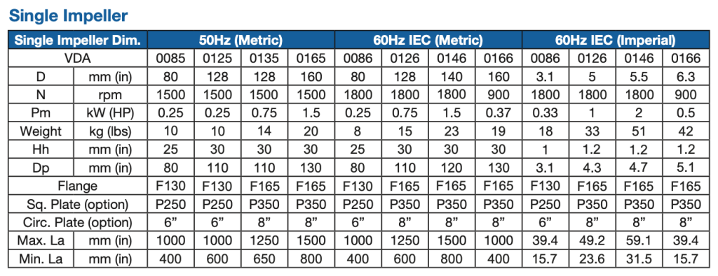 With the VDA having a specific impeller, to support a wide range of open or closed tank applications up to 1.4m (4.75ft) diameter (4.4 m³ – 1200 gallons) and viscosities up to 1,000 mPas (cP) at 1.3 specific gravity.
