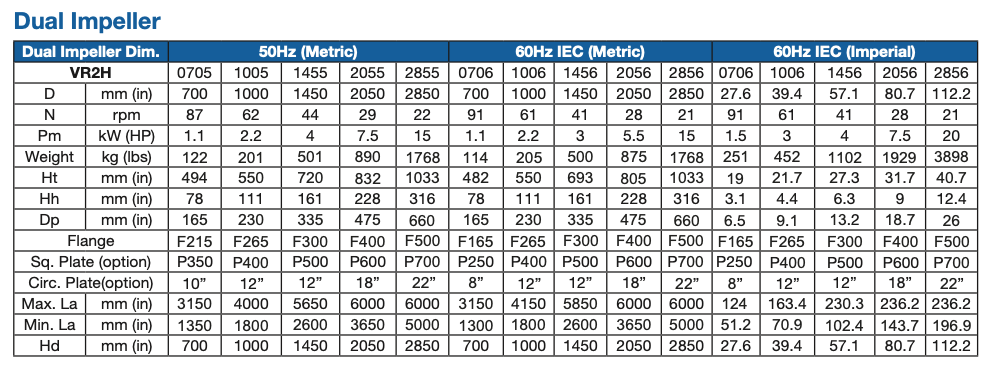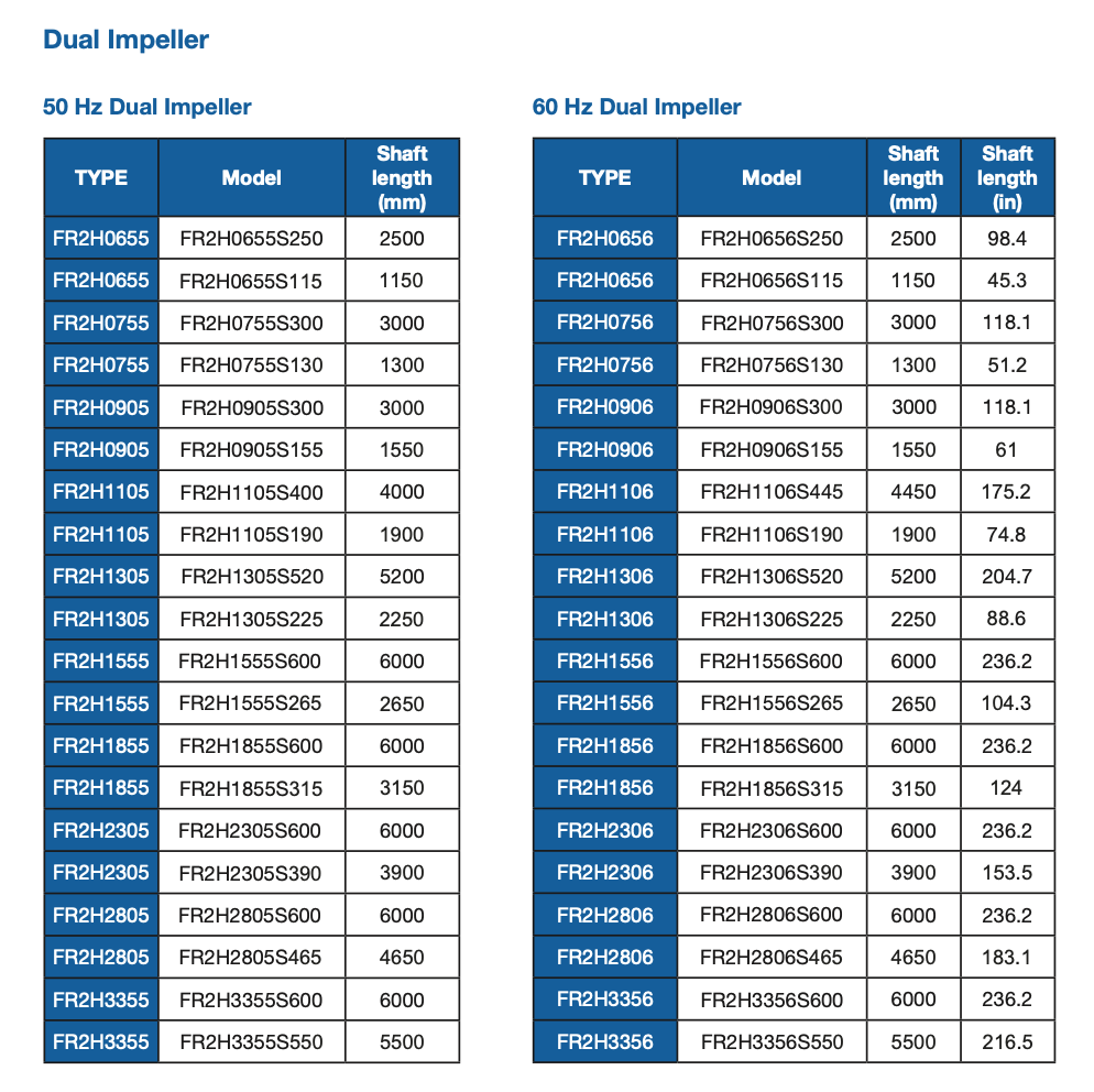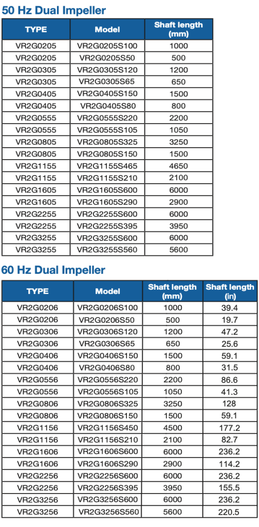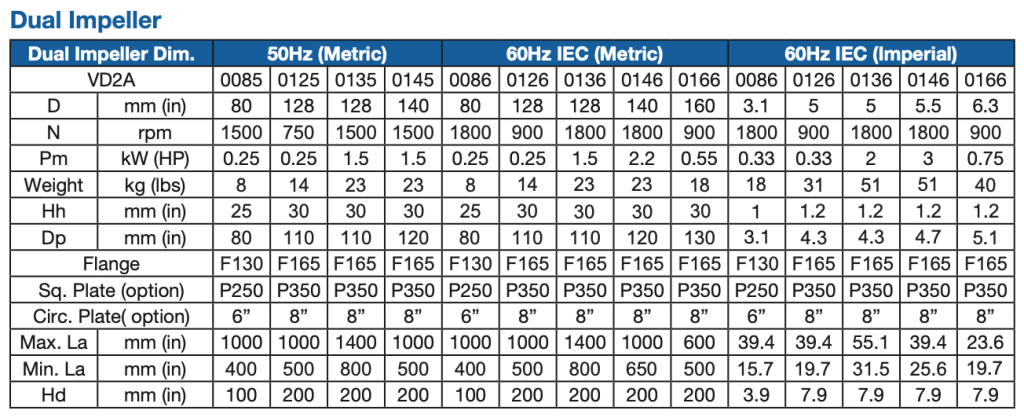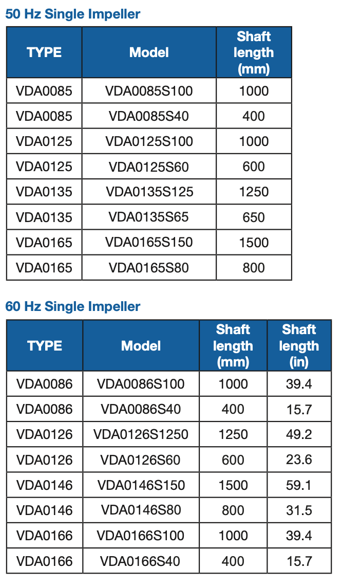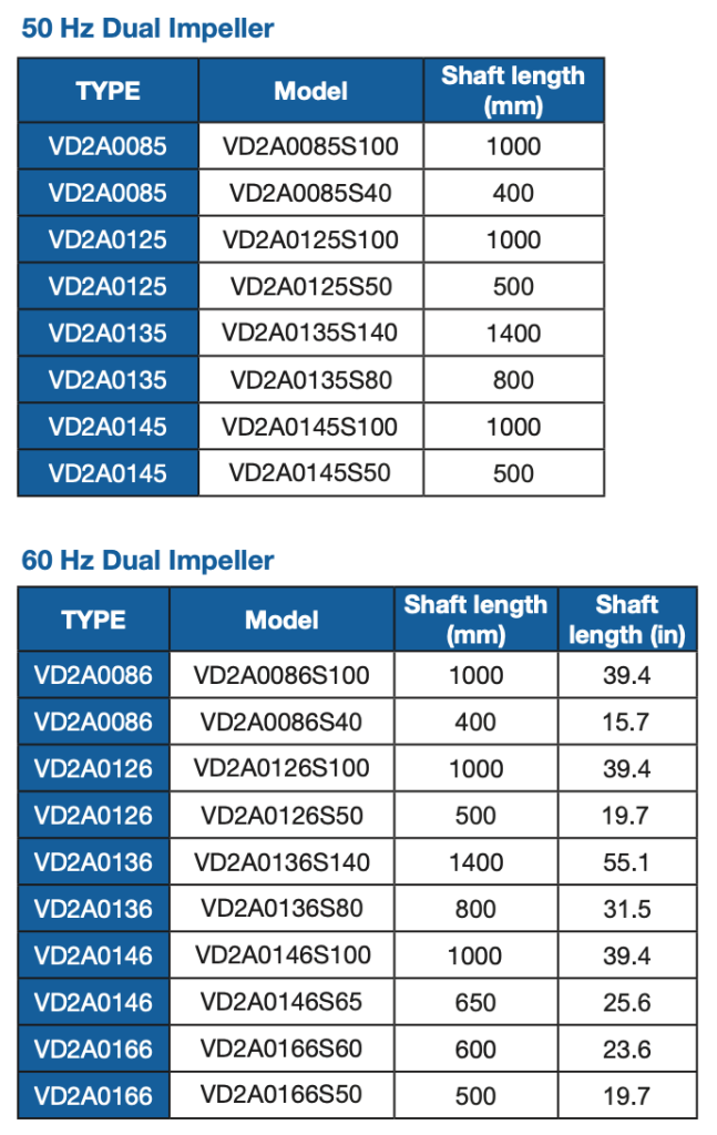 Available with 1 or 2 impellers