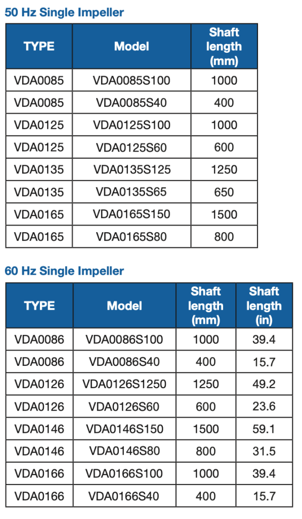 The VDA model is a motor driven mixer available with a variety of marine impellers and mounting options.