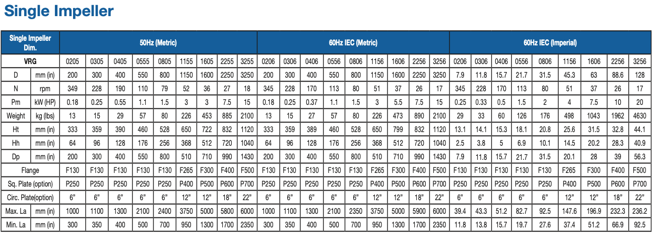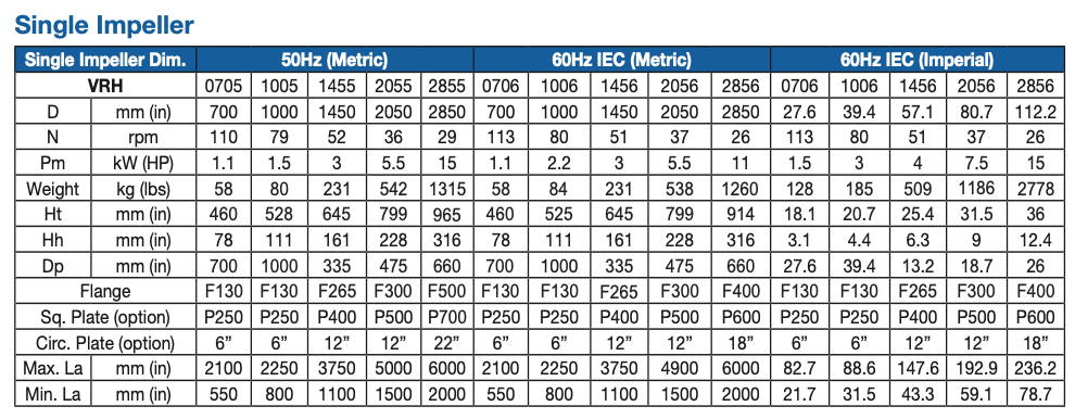 With the VRH mounted with a HXP propeller, to support a wide range of open or closed tank applications up to 9.5m (31ft) diameter (1200m³ – 317000 gallons) and viscosities up to 1,000 mPas (cP) at 1.3 specific gravity.