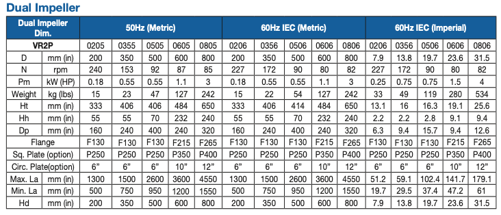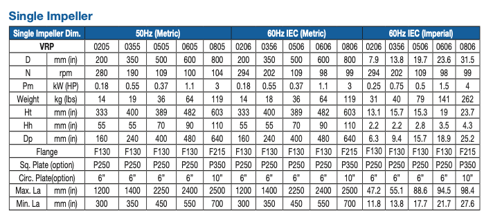With the VRP fitted with a PBT impeller, to support a wide range of open or closed tank applications up to 4m (13ft) diameter (90m³ – 23800 gallons) and viscosities up to 1,000 mPas (cP) at 1.3 specific gravity.